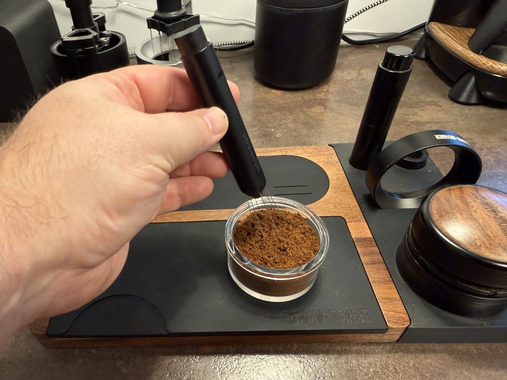 Gerade bei Bottomless-Portafilter-Aufnahmen zeigt sich, wie stabil der Puck bleibt. Es gibt keine Blowouts, keine Seitenkanäle. Die Vibration sorgt tatsächlich für eine innere Verdichtung, ohne die Struktur zu zerstören.